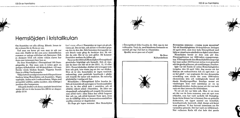 Hemslöjden i Östergötland firade etthundra år 2010. I firandet ingick att en jubileumsbok skulle produceras. Jag, som hade lång erfarenhet som styrelseledamot i organisationen fick uppdraget att skriva boken. Boken har ett fantastiskt omslag (inspirerat av omslaget på ett av Rolling Stones skivor). Hemslöjdsgården i Linköping fotograferades med en värmekamera. Bildens olika färger fick symbolisera all den värme som kommer ut ur hemslöjdshuset och dess verksamheter.