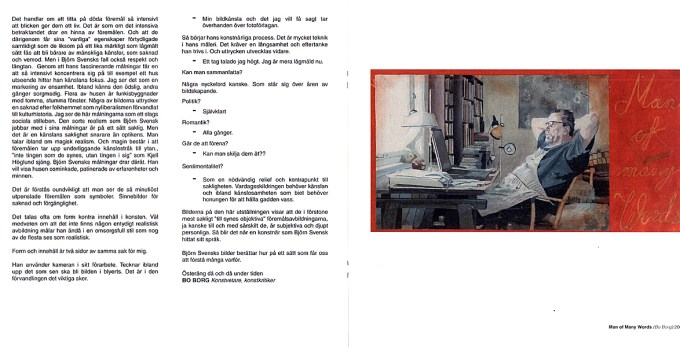 Björn Svensk gjorde en stor retrospektiv utställning på Passagen i Linköping 2017. Till den skrev jag en essä till katalogen. Den innehåller en utförlig beskrivning och analys av Björn Svensks konstnärskap genom åren.