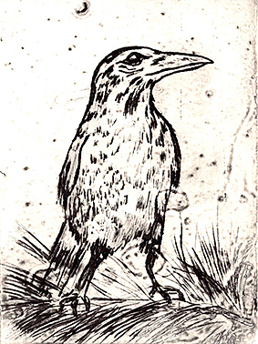 En av de vassaste bilderna på den utställningen har en skogsödla som motiv. Den är gjord i en annan grafisk teknik som kallas collografi. Hon har tecknat sitt motiv i en kartong som lackats med shellack. I det här fallet har hon klippt ut motivet efter konturerna. Bilden har sedan färgats in. Trycken blir så kallade monoprints. Motivet varieras med färgnyanserna och genom bildens placering på papperet.