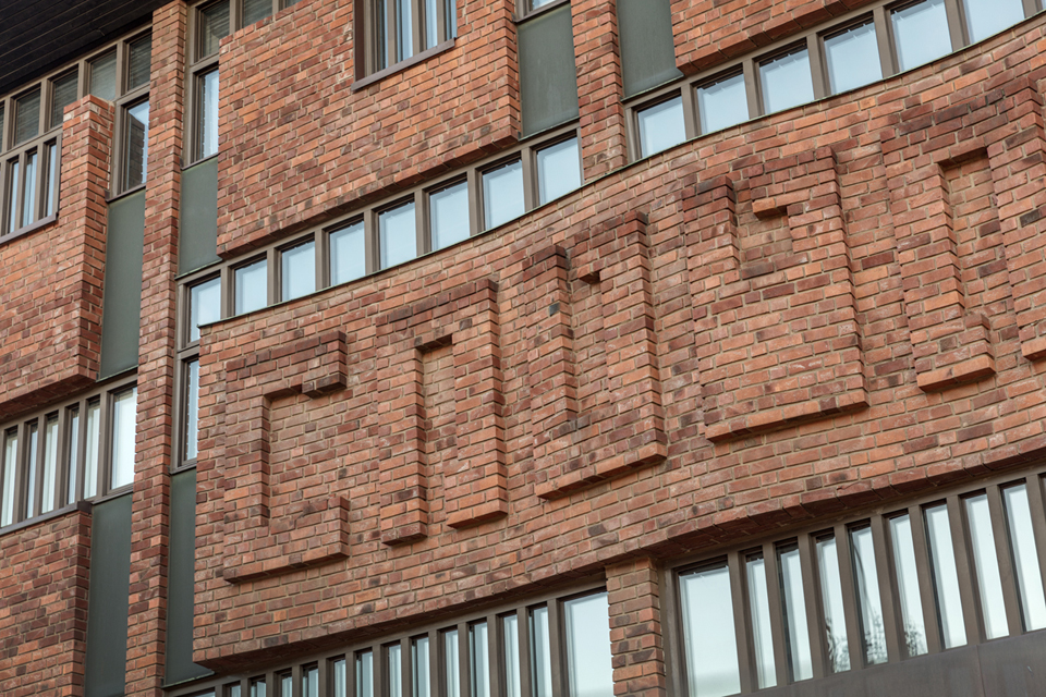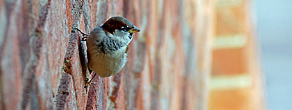 Kulturhusets handslagna tegel är väldigt greppvänligt, om man som liten fågel vill sitta på väggen och sola sig.