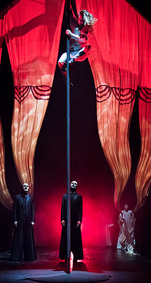 Föreställningen får ett särskilt liv och skimmer av de nycirkusinslag som medlemmar ur Cirkus Cirkör levererar. Då kommer magin och det öververkliga, religionens omistliga vapendragare, in. Cirkör gör verkligen det overkliga och omöjliga verkligt. De är både råstarka och poetiska numren på lina. Olika kroppar kändes sammanflätade till enheter som om de visade kraften i revanschen och det obetvingliga i kvinnokraften. Det handlar mindre om att överskrida sina begränsningar än att realisera sin potential.