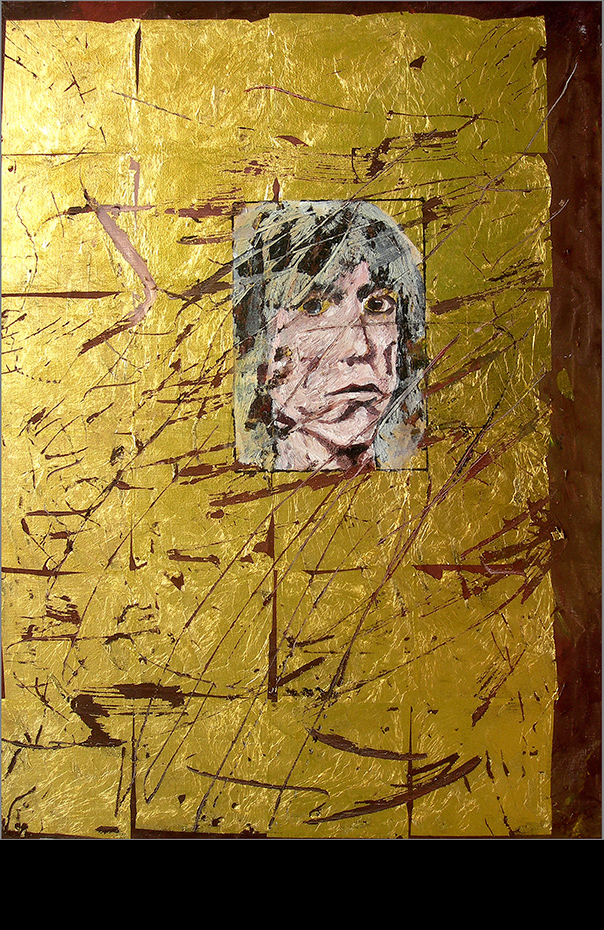 Andra gånger finns kontakt med ikonmåleri. Tydligast i ett porträtt av Iggy Pop som fått en bakgrund av slagmetall i ett uttryck av både glans och ickeglans. Glansen är sönderklöst som Iggys kropp på de mest berömda konsertbilderna.