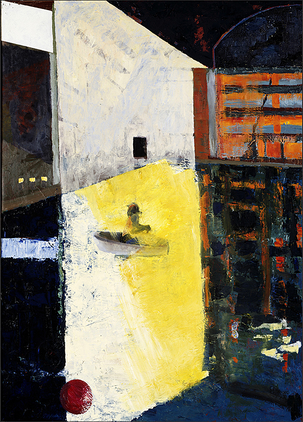 Flera av målningarna har tagit sin utgångspunkt i gamla fotografier. Här finns bilderna av ett tomt och öde badhus, som till och med i den målning i serien som har några simmande blir bilder där ljuset modulerar fram ett slags patos. En målning några år senare från Eriksdalsbadet som blir en symbolisk ljusfest.