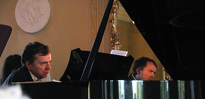 Vi fick bland annat fint höra Tzigane av Maurice Ravel. Spännande musik med alla möjliga influenser av jazz, folkmusik och så det där ravelska pianoskimret. Den framfördes av klockrent Alexander Sitkovetsky på violin och Pater Nagy på piano. Och ett stycke av Zoltán Kodály fick Sitkovetsky och cellisten Wilhelm Stam att locka fram det bästa ur varandra och musiken.
