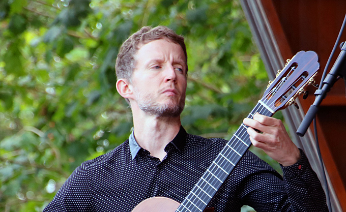 På tisdagskvällen fick vi bänka oss i den pampiga slottssalen på Läckö Slott, en miljö som andas historia i varje minsta del. Och det är klart att man ska spela barockmusik i den barocksalen. Flöjtisten Ann Elkjär och gitarristen Martin Fogel är finstämt och inkännande samspelta efter många års samarbete. Deras tolkning av en av Bachs flöjtsonater byggde på balans och känsloprecision. Deras sammansmältning av Bachs nästan matematiska stringens med en mild känslosamhet gav oss en stilenlig och genommusikalisk inledning på kvällen.