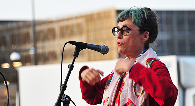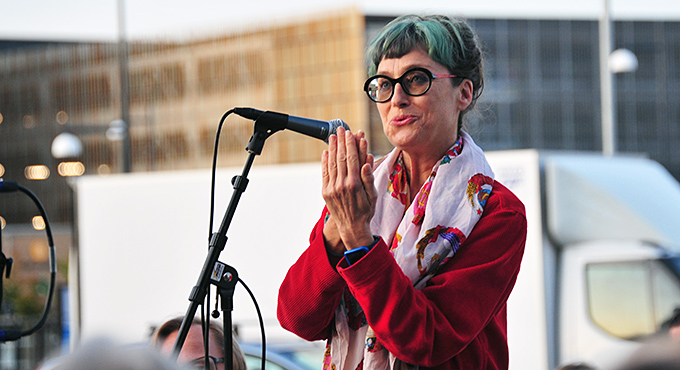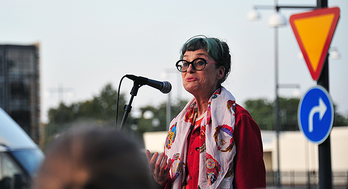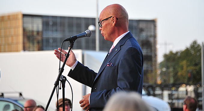 Thomas Oldrell, konstchef, talade inför massorna och …