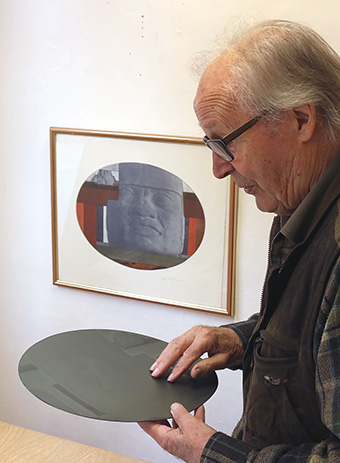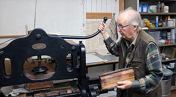 Ett exemplar av alla de stenlito han tryckte där har han nu skänkt till Skaraborgs Konstgrafiskas arkiv.