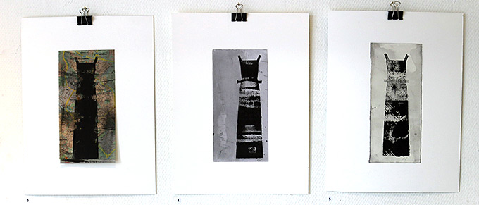 Hennes bildspråk, oavsett i vilket teknik hon uttrycker sig handlar på något vis om olika sätt att bryta mörker och kanske instängdhet.