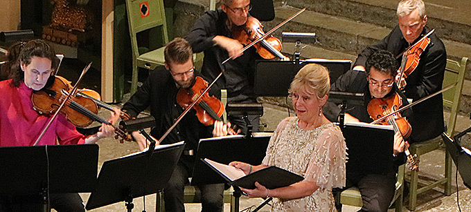 Så kom det avsnitt av konserten som jag imponerades mest av. Det var de två mötena med sopranen Lisa Larsson. Hon är en internationellt mycket välmeriterad sångerska som sjungit tillsammans med dirigenter som Claudio Abbado, Colin Davies och John Eliot Gardiner. Och på de ledande operahusen i Europa. Hon har klassats som Mozartexpert.