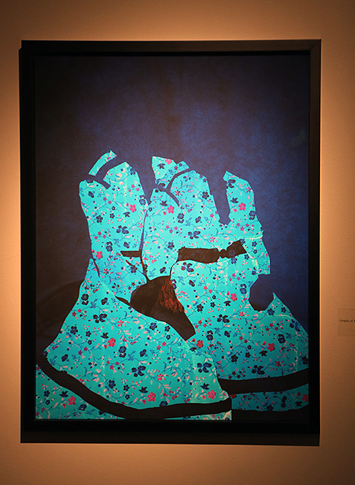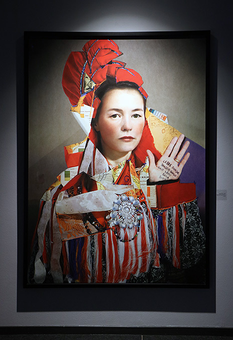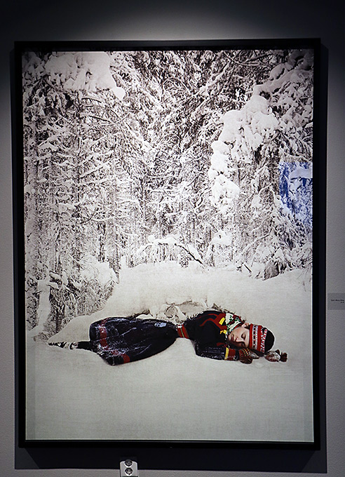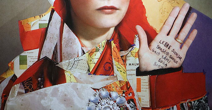 De arbeten som nu visas i Lidköping har motiv från Sapmi och samisk kultur. De gör stora collage med foton som material. De går in i den samiska kulturen och låter oss möta människor därifrån i fina porträtt. Ansiktena förankras i Sápmisk kultur. Vackra storslagna landskap förstås. Men de har också plockat sönder andra markörer som dräkter, kartbilder och ord. De stora bilderna är ståtliga, collagen blir praktfulla. Det individuella möter mera allmän kulturhistoria. Kläderna är kulturbärare och de här collagen skapar ett sammansatt sammanhang som de porträtterade bär med stolthet och värdighet.