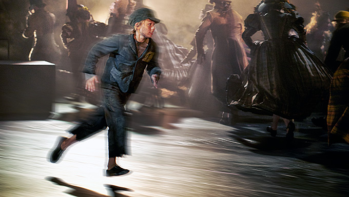 I centrum står barnhemspojken Oliver. Inledningsscenen är som en stenhård örfil. Den svältfödde pojken, ett barn, ber artigt om litet mer mat. Och då tar det hus i helvete. En snillrik spelöppning som både slår an tonen och presenterar vad det ska handla om. Förtryck och exploatering av människor och särskilt de mest utsatta, barnen.