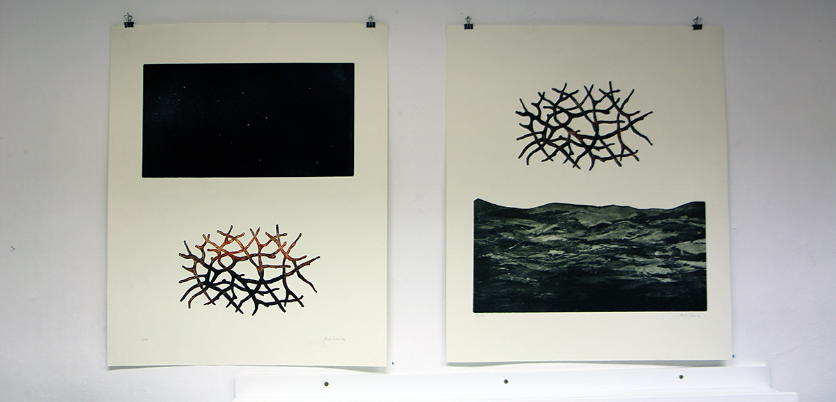 Hillevi Nagel visar stiliga bilder. De har drag av svartvita fotografier och har en hög konstnärlig densitet.
