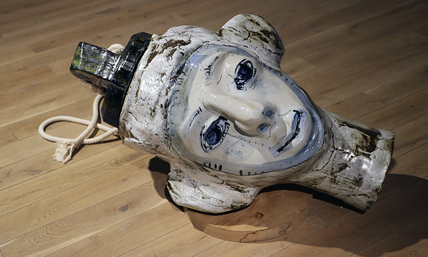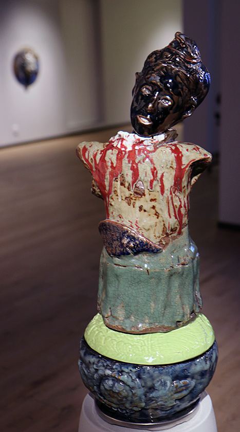 Torsten Jurell lägger ingenting emellan för att göra ett rejält intryck och avtryck på oss besökare. Nu har han fyllt Lidköpings konsthall med stora kollektioner av intressanta föremål och han har satt dem samman för att berätta en ny variant av sina historier. I en utställning så rik på intryck som den här är många tolkningslinjer möjliga. Någon tänker på politik, vem kan få associationer till Kina utan att göra det. Det väcks andra tankar om hur långa historiens linjer kan vara. Här finns många skulpturer med människoansikten. Man kanske närmar sig dem med psykologiska glasögon och eftersom de ser ut som historiska lämningar, men också har drag av oss nutidsmänniskor, kanske man kommer att tänka på hur lika människornas känslor kan tyckas över århundraden eller årtusenden. De många skulpturerna av människoansikten med en bit av bålen har anordningar för att montera marionettrådar. Vem ska dra i dem? Jag ni märke att den här utställningen är rik på ingångar.