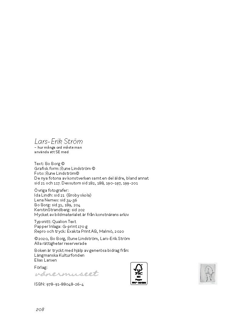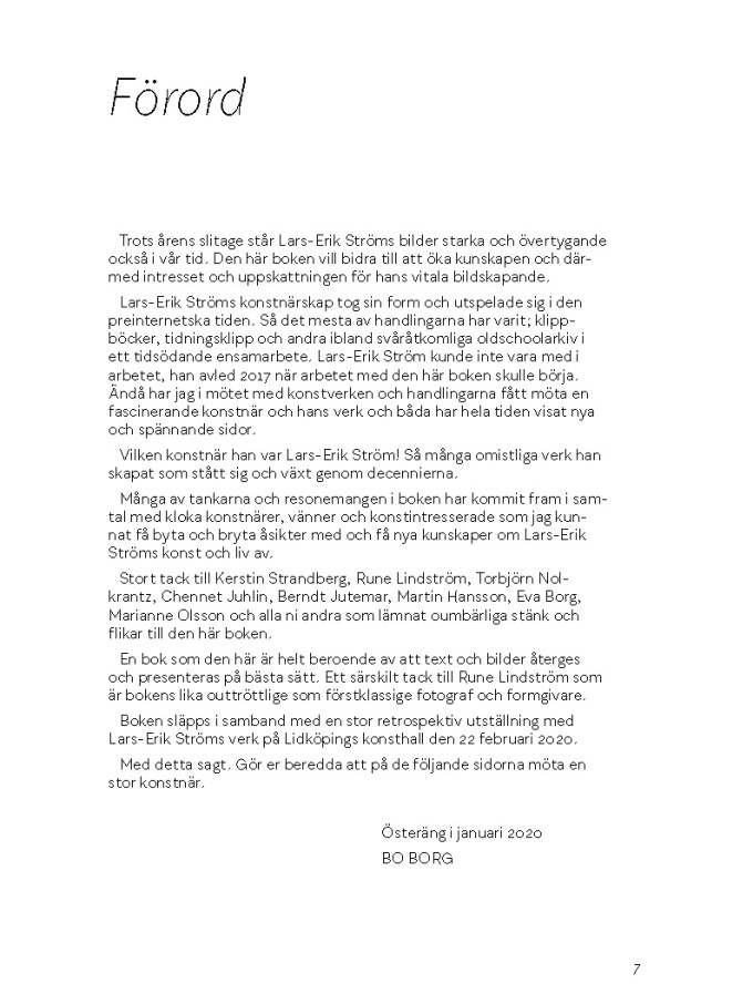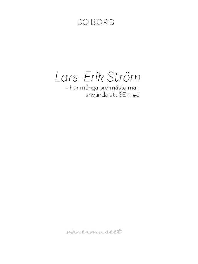 Boken släpps den 22 februari i Lidköpings Konsthall i samband med utställningen av Lars-Erik Ströms konst.