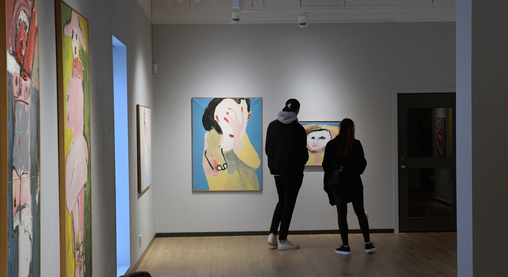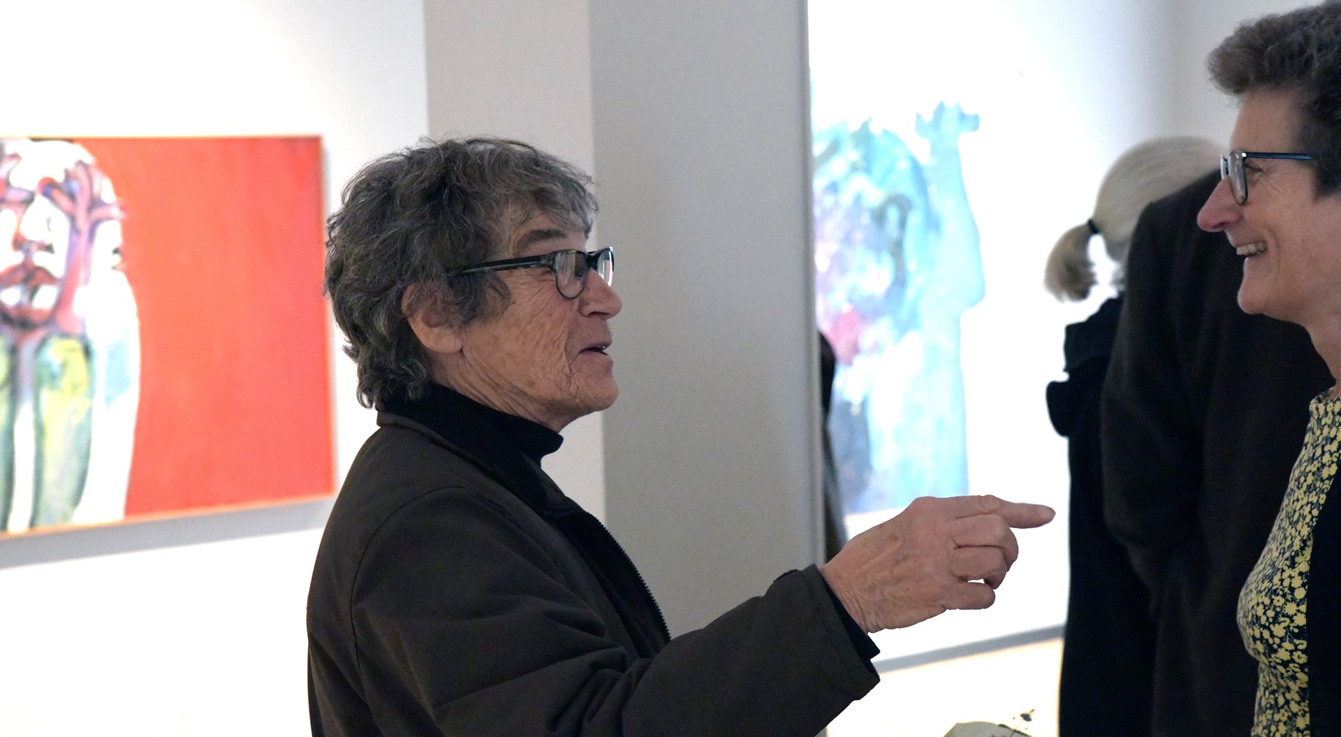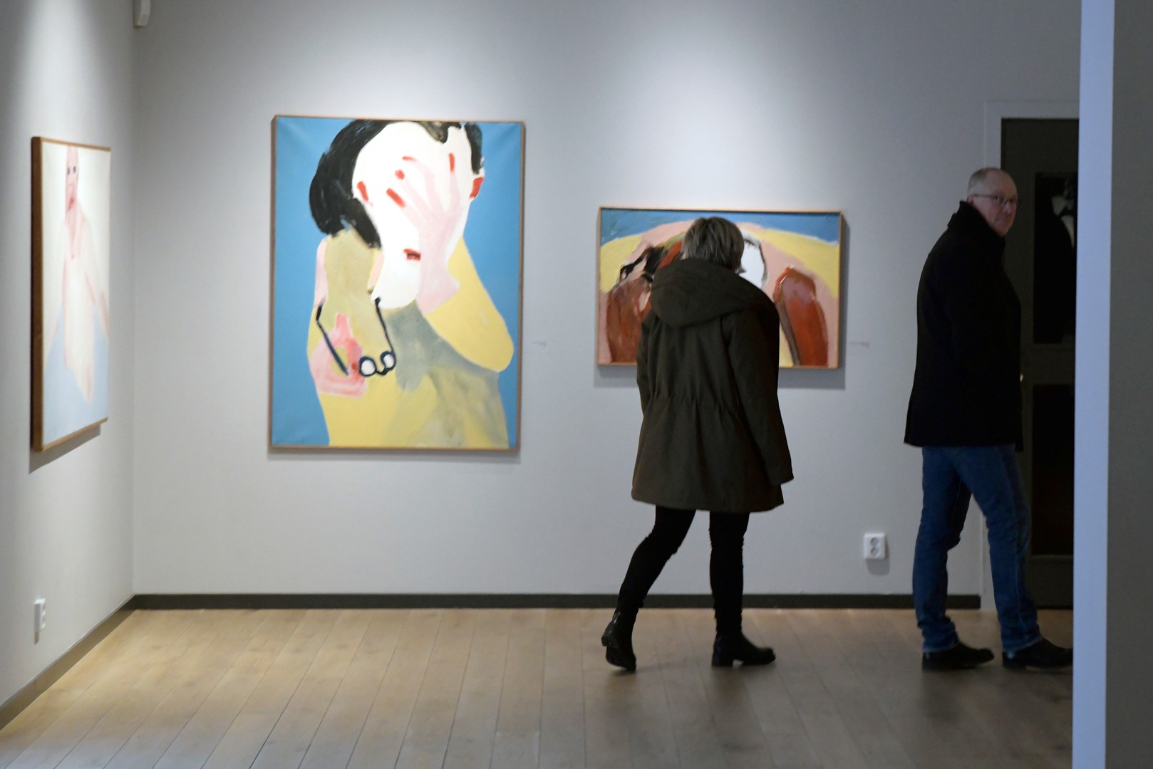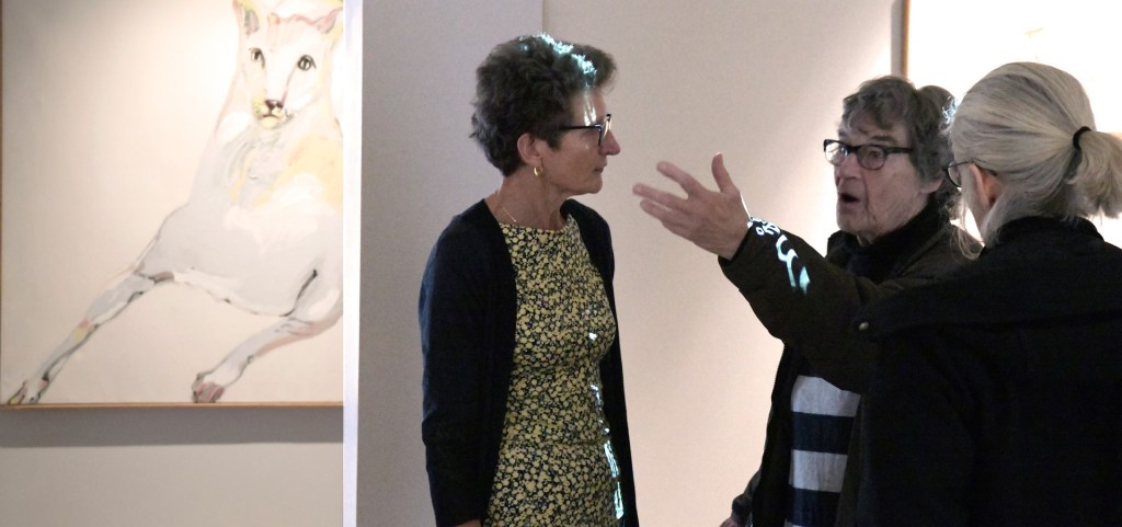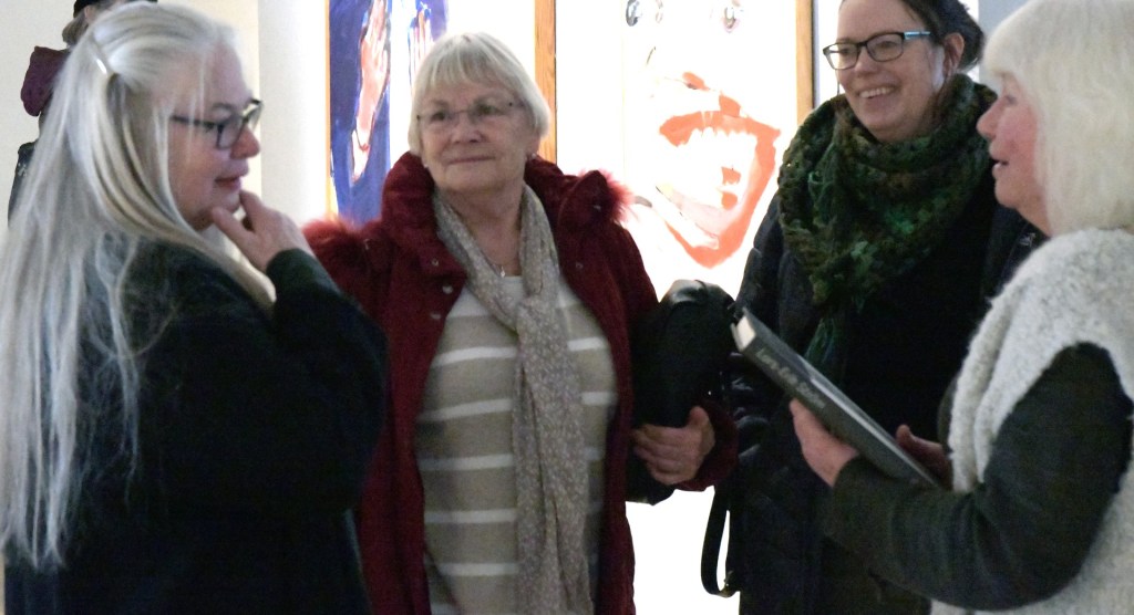 Eva Henje, konstnär, pekar på målningen K badar och säger: