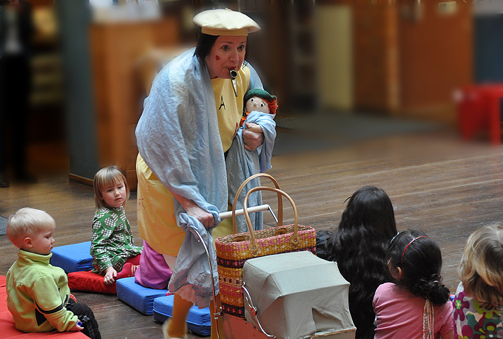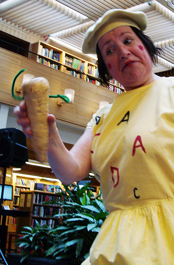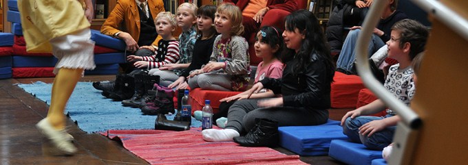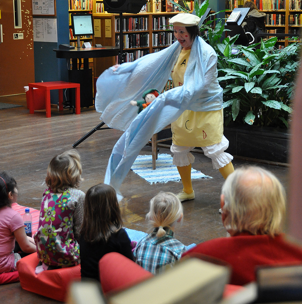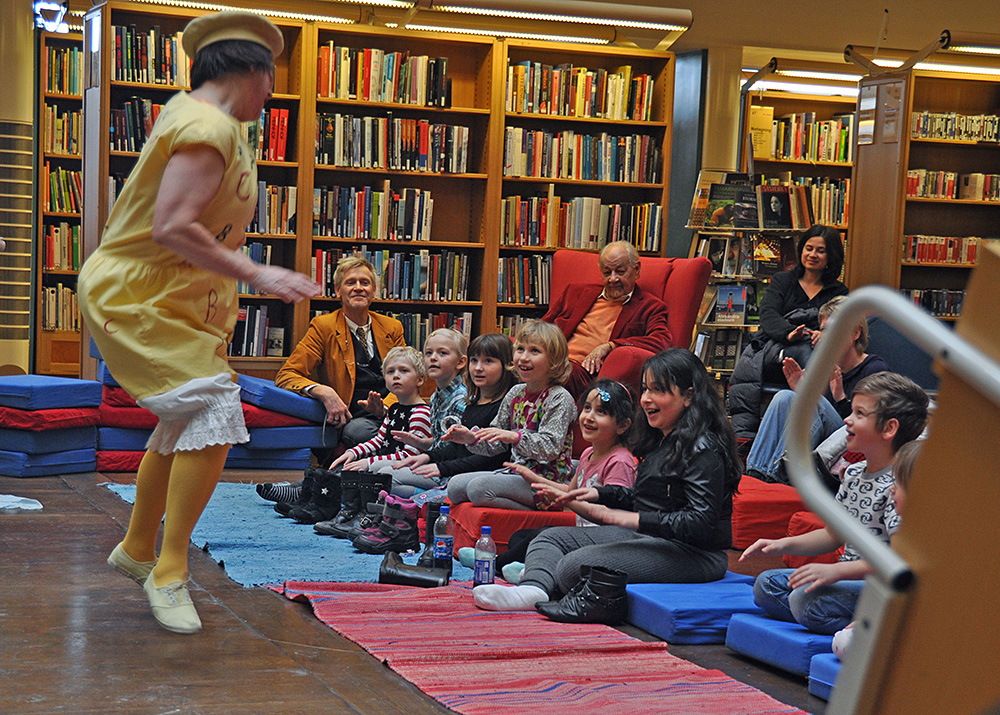 Krakel Spektakel med Marita Sonestedt tillsammans med barnen på biblioteket.