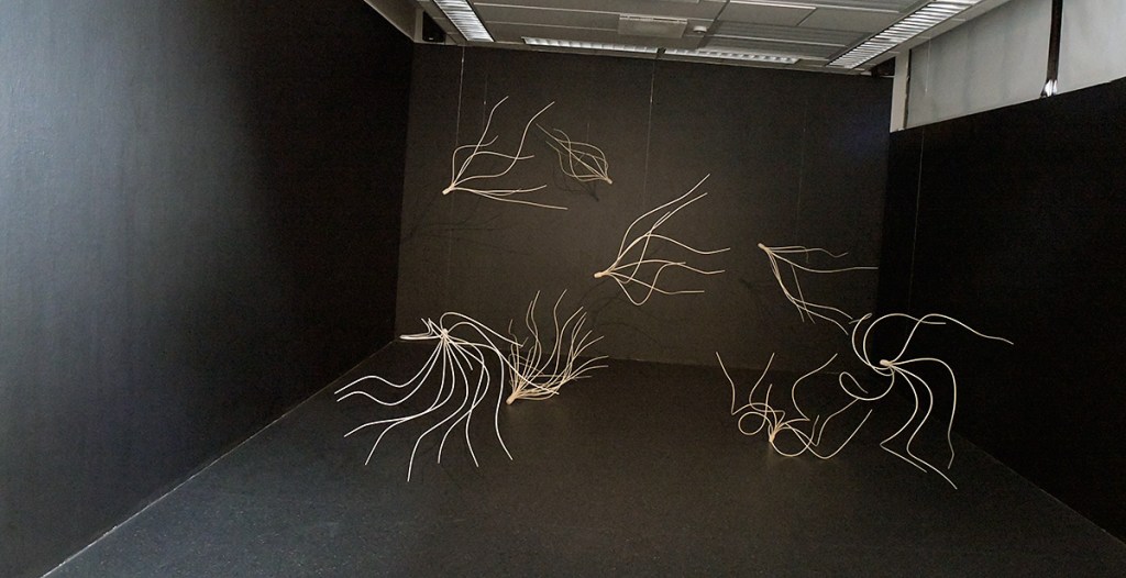 Pär Brandstedt visar en sida jag inte stött på tidigare. Här handlar det inte i första hand om att demonstrera hans berömda handaskicklighet. Han visar en stor installation av långsträckta bleka tunna former som ser ut som böljande undervattensväxter som formats av vattnets rörelser. Det blir en uttrycksfull och vacker skulpturinstallation, säkert tänkt för en placering i offentligheten. Kul när de gamla kämparna vågar sig vidare.