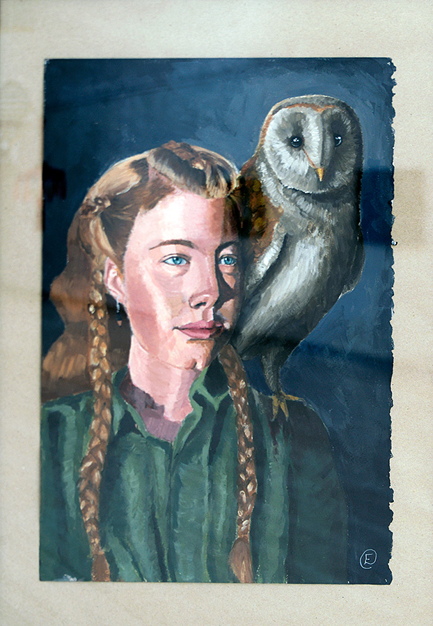 Även Emelie Voineas akrylmålning för oss till en annan tid. Uttrycket ger associationer till ett trettiotalsexlibris och färgskalan och bildstilen till en illustration ur Rekordmagasinet. Det är nåt med den där målningen.