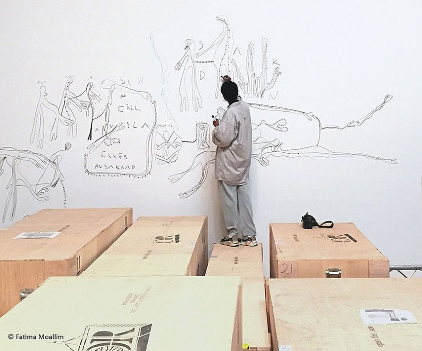 Fatima Moallim är inne på samma linje: ”Ibland frågar jag mig själv hur jag kan skapa utan att ha ett uttalat eller uttänkt motiv? Svaret kan vara att bilderna alltid funnits inom mig.”