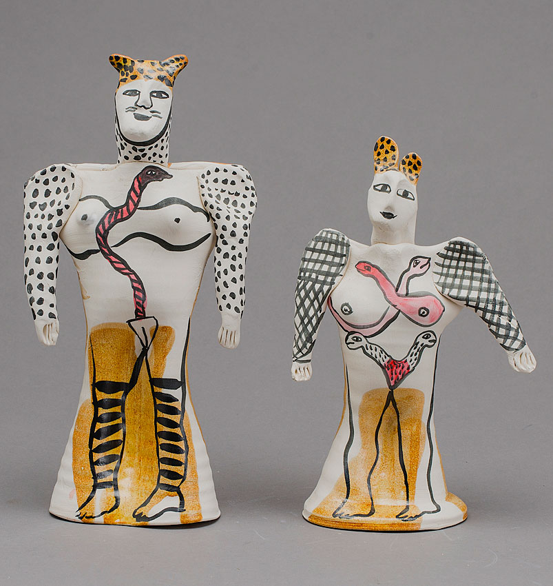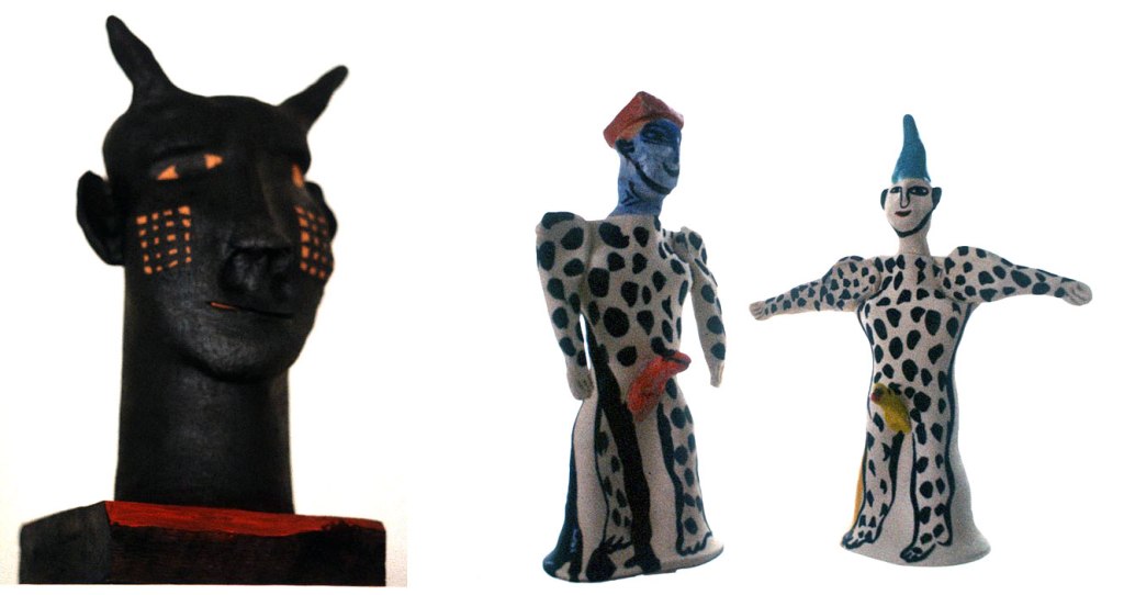 - Jag gjorde redan då primitiva figurer i ett både stolt och burleskt formspråk. Mina saker låg och ligger långtifrån Svensk Form och svensk standarddesign. Det är inga vackra föremål. Inte vackert, men desto mera uttrycksfullt. I protest mot allt det ”smakfullt” svenska började jag göra fula saker. Och när jag blev anställd på glasbruk anpassade ja mig naturligtvis till uppdraget. På mitt sätt.