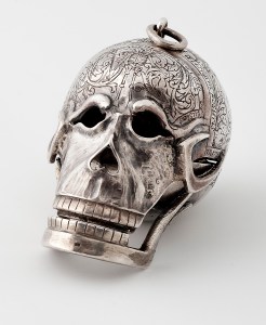 Men förr var döden närvarade på ett mera påtagligt sätt. En symbolisk framställning av den ständigt närvarade förgängelsen kan man se i flera föremål på utställningen exempelvis i ett fickur i form av ett kranium i silver och mässing av en okänd mästerhantverkare från sjuttonhundratalet. Samma medvetenhet om dödens obönhörlighet finns i sjuttonhundratalspsalmen: ”min gång närmar sig min bår. Jag går mot döden, var jag går”.