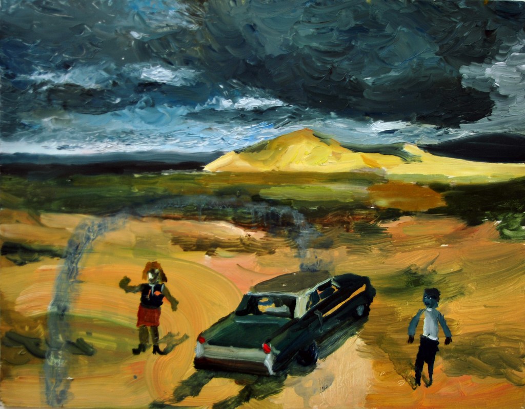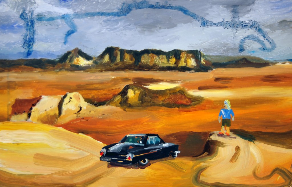 En annan självklar konsthistorisk intertext när man ser bilar i ödesmättade landskap går till John-E Franzén och Ulf Wahlberg. Deras stora amerikanska bilar i förfall i amerikanska badlands blev för många av oss vanitassymboler för överflödssamhället. Men dramat är mer sammansatt än så.
