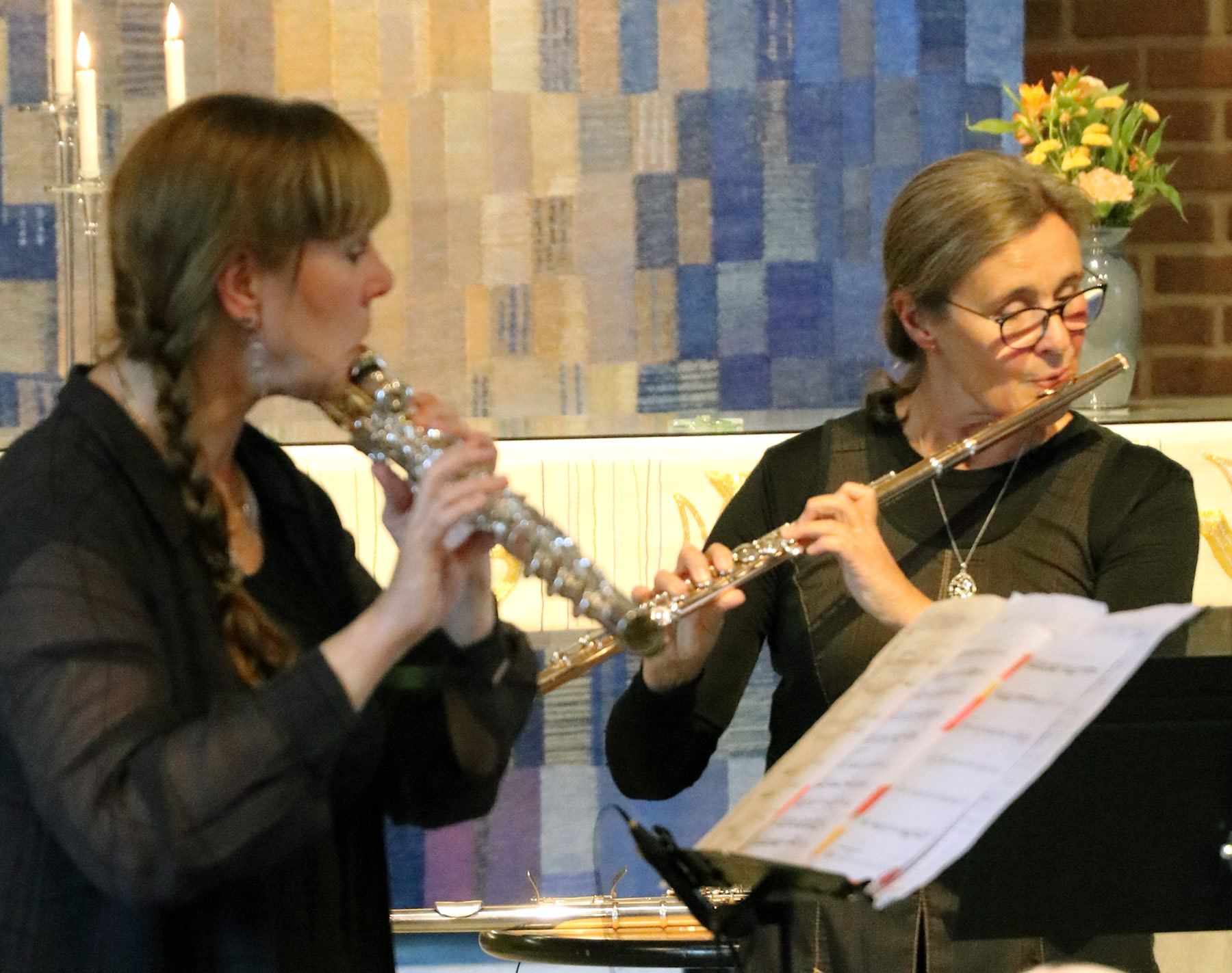 Det känns fint när man får vidga sina musikaliska vyer. När man får lust och inspiration till något nytt, något annorlunda. Det fick jag verkligen vid konserten i S:t Sigfridskyrkan där Flöjtkvartetten 40f spelade. Hela första avdelningen bestod av ny musik jag aldrig hört tidigare. Och den spelades av fyra eminenta flöjtspelare som spelade på många olika flöjter. Det var många gånger annorlunda toner, tonfall, klanger och rytmer än vad vi är vana vid på kammarmusikkonserter. När det görs så musikaliskt som 40f gör det blir det en resa in i nya musikaliska trakter på ett lustfyllt och medryckande sätt. De förde oss in i ibland främmande ljudrum där det var både trevligt och spännande att vara tillsamman med dem. De har lust och ambitioner att pröva det oprövade och det smittade och gav mersmak.