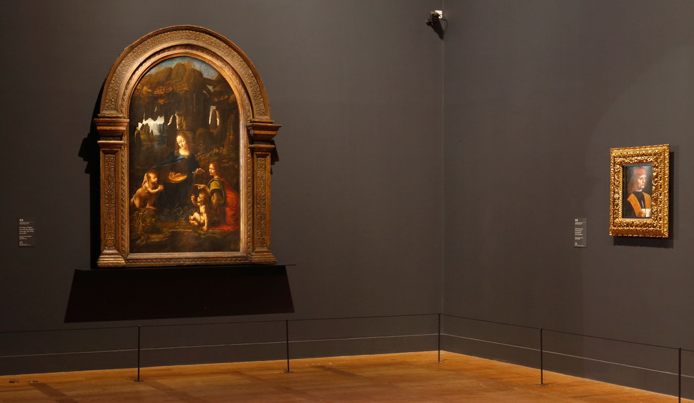 Vi får se många viktiga målningar. Han gjorde blott ett tjugotal. Man saknar förstås Damen med Hermelinen som finns i Krakow, Men de här målningarna är oerhört ömtåliga. Man vågade inte flytta ner Mona Lisa några våningar ner i Louvren. Ännu mindre Damen Med Hermelinen ända från Polen.