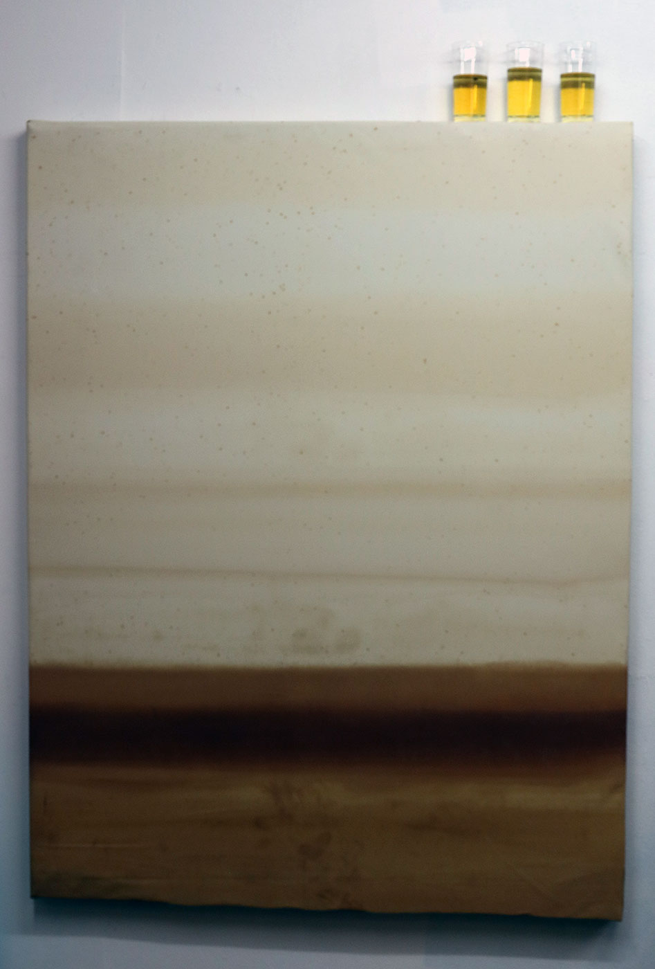 Liveröds ateljé och verkstad och vad allt annat det är var öppen. Och bara ett besök där är ett äventyr i Gröna Lundklass. Man tittar på något häftigt. Så fort man vrider på huvudet ser man nåt annat kul. Och hela tiden finns det mer och ännu mer i splitvision som pockar på ens nyfikna uppmärksamhet. Mycket, mer, mest verkar vara ledorden. Jag stannar upp vid en målning med ett stiliserat landskap. Sådana finns det massor av i modernismen och det är alls inte Liveröds grej. Den här målningen ser litet sjuklig ut i färgen. Och på ramen står tre glas med färgmatchade skitiga vattenprover. Det finns inga konsthistoriebegrepp som ringar in vare sig konceptet eller upplevelsen.
