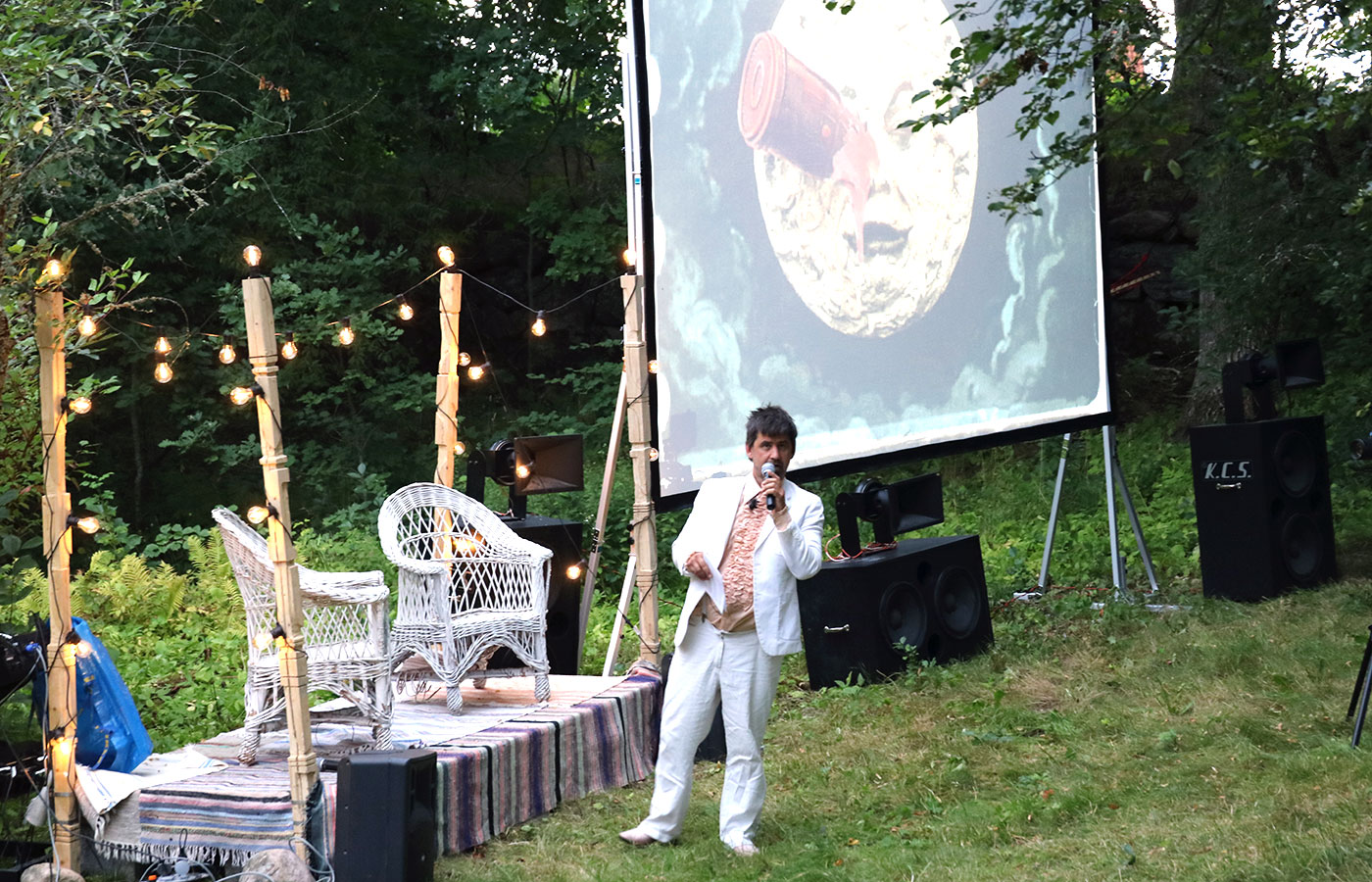 Kvällens program avslutades med en visning av filmen Grey Gardens med hjälp av Folkets Hus i Lidköpings förtjänstfullt utlånade mobila utomhusbio.