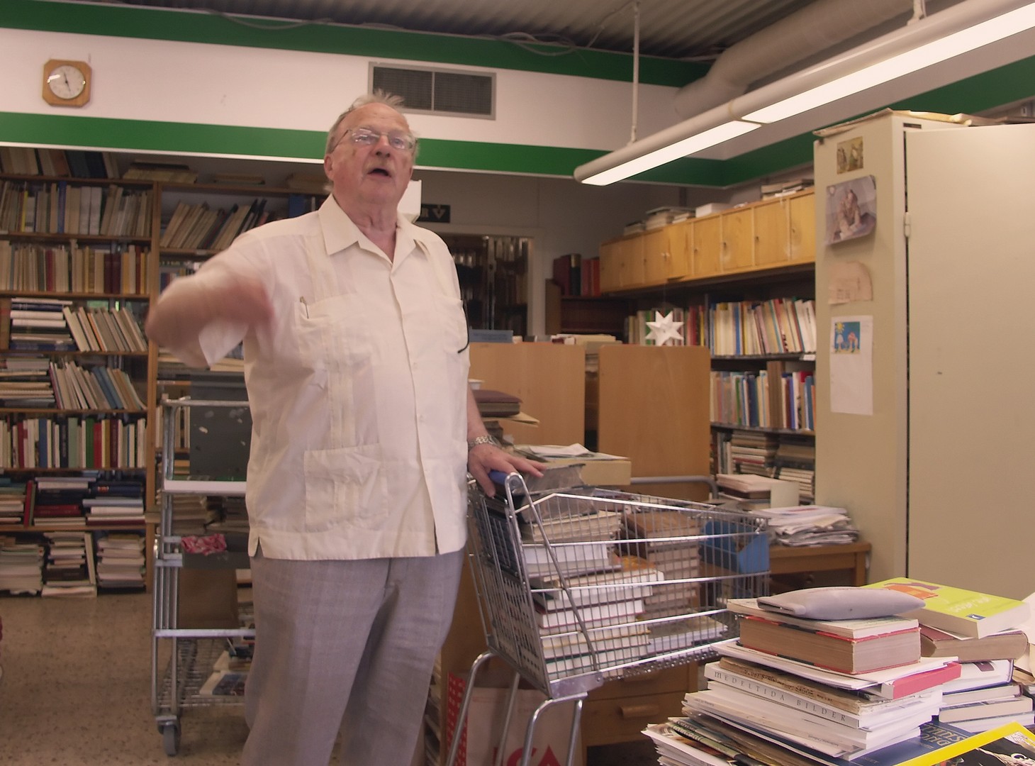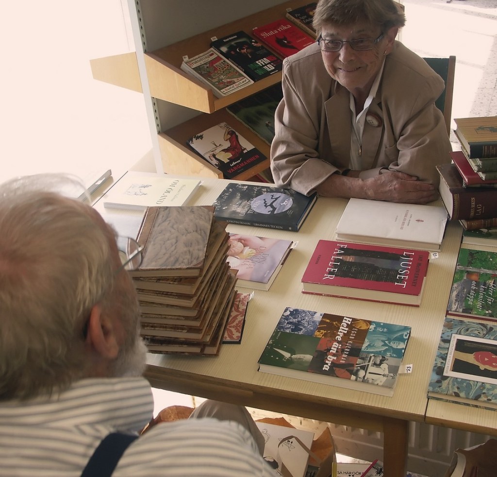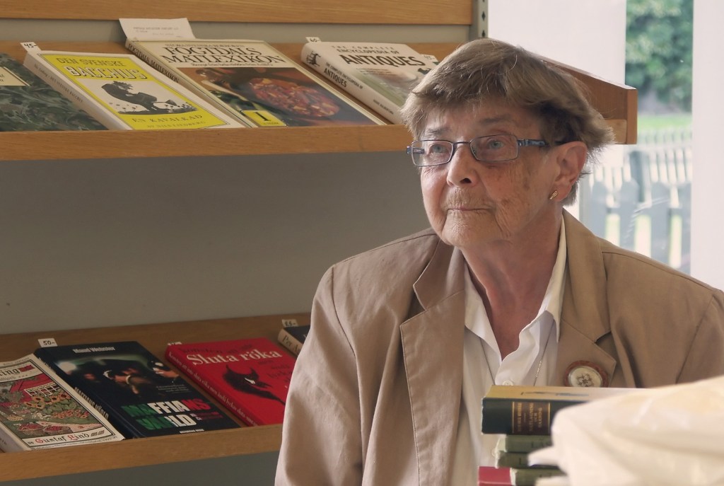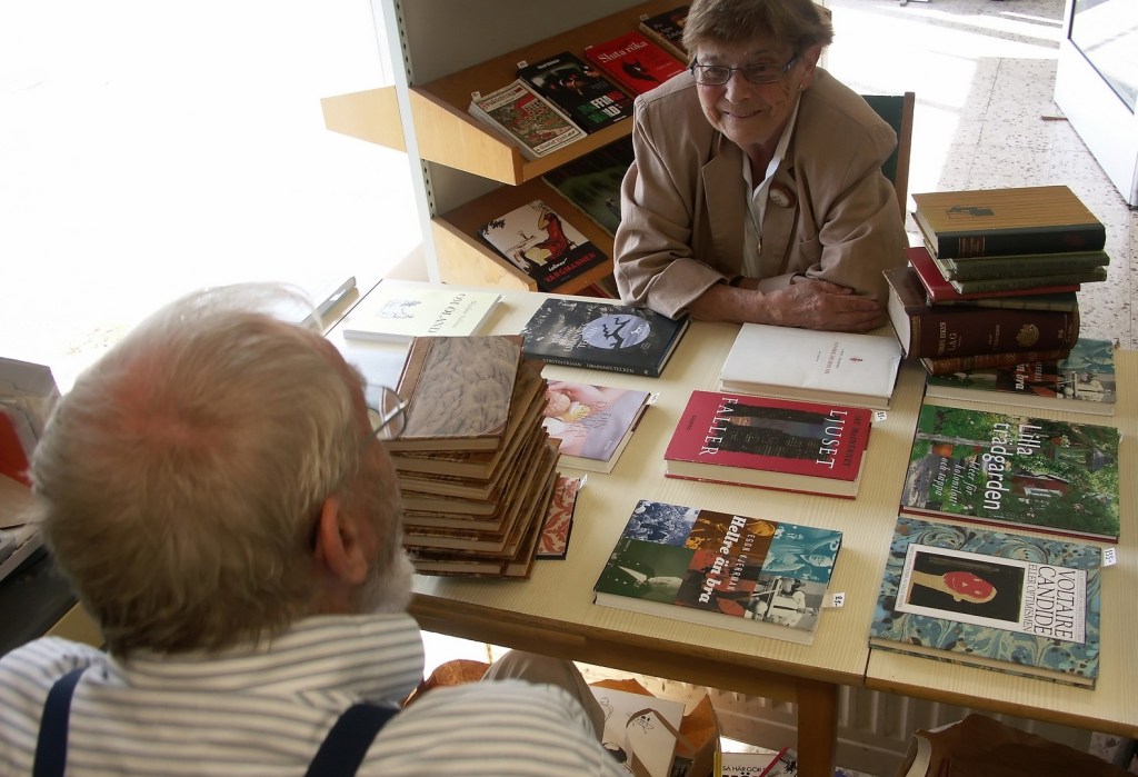 Ett kortare ”föredrag” blev det tid till när kundvagnen var full med böcker