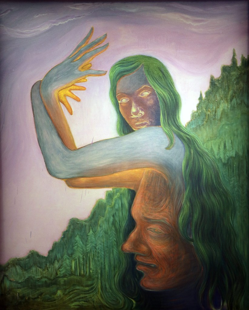 Andra verk är tätare och mera uttrycksfulla. En målning som ”Från värld till värld” ser ut som en affisch eller ett skivomslag från flower powereran. Samma sak med målningen ”Strata III”. Andra är mera trolska. Här finns målningar i en fulnaivistisk stil som ser ut som uppspeedade sagoboksbilder.
