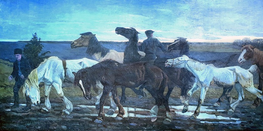 Hennes konstnärliga produktion dessförinnan blev liten. Hennes måleri är svårt att se och ta del av i dag, inga museer har förvärvat hennes verk. Det blir förstås ett problem, för bokens författare och för oss läsare som vill närma oss hennes konst. I boken redovisas några enstaka färgbilder av målningar. I mina ögon ser de högst konventionella och litet bokmärkesaktiga ut. Undantaget som bekräftar regeln är den stora målningen Marche funèbre. Den skildrar uttjänta hästar på sin sista resa på väg mot slakten. Den är gripande med sin karaktärisering av de arma djuren och deras individuella lidande. Den finns också återgiven i boken.