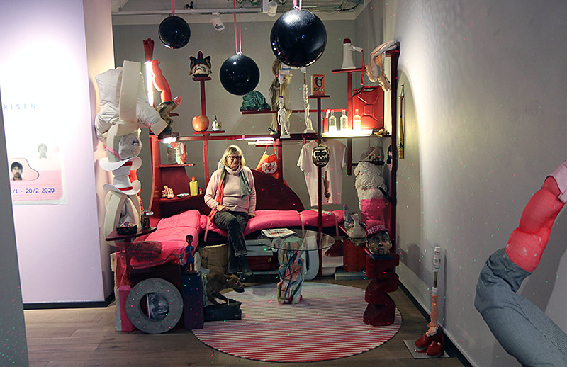 Den där TV-soffan är ett verk i sig. Liksom utställningen i övrigt är den både konsten och dess rekvisita. Och där ska gäster bjudas in att sitta och tala om ämnen som har med konst att göra och kan intressera en konstpublik.