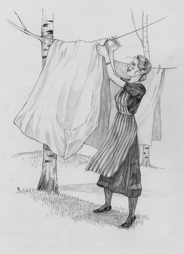 Serieformen är full av möjligheter. Kristin Lidström går en helt annan väg. Hon visar blyertsbilder med hushållsnära motiv med trettiotalskänsla. Som de visas här blir de mer illustrationer an kvinnosysslor på hennes farmors tid. Hennes stil och motiv flyttar oss skickligt till en annan tid.