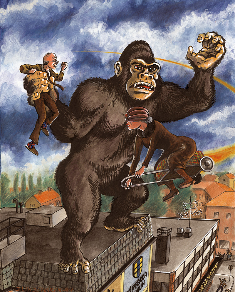 Jag har större utbyte av boken än utställningen. Skälet är att jag tycker stripparna har sitt rätta format där. Och att man kan läsa pratbubblorna i godan ro, sittande som jag föredrar.