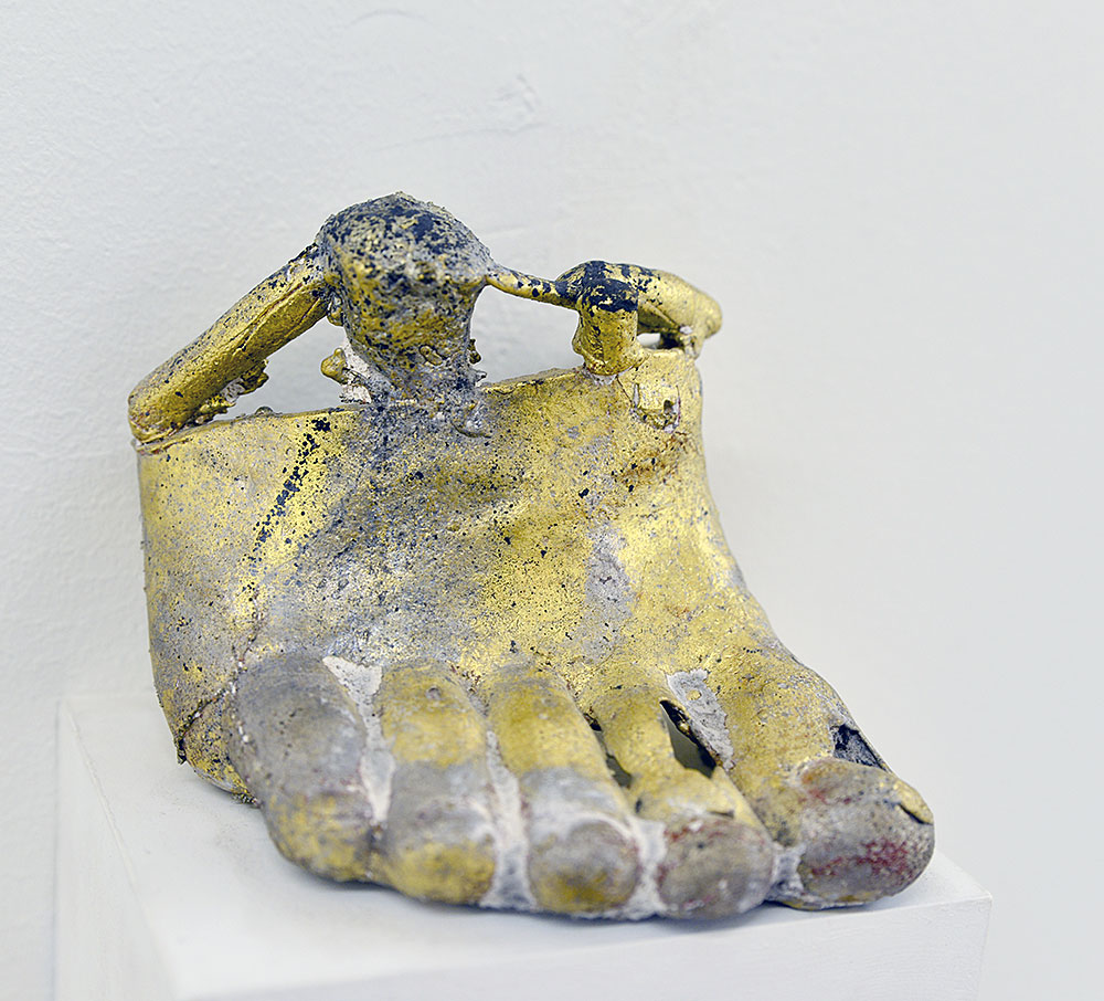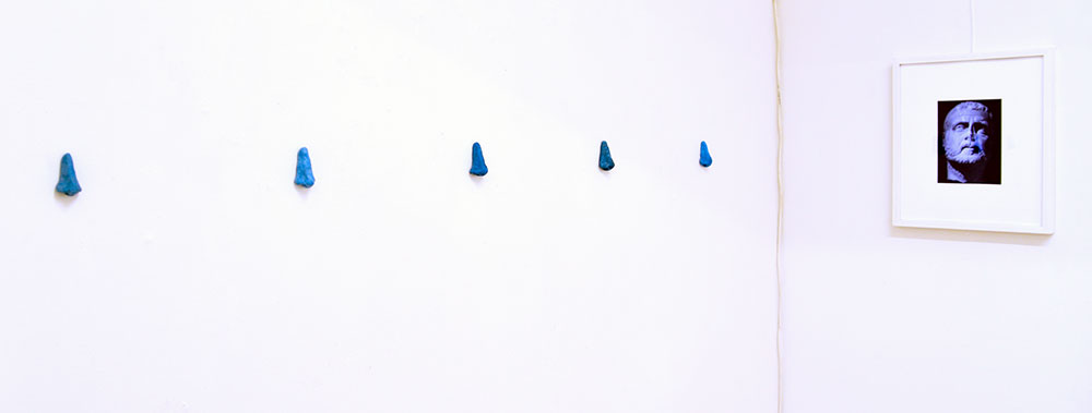 Pontus Hammarén och en besökare hade en diskussion om antika skulpturer och kroppsdelar. Själv associerade jag till votivgåvor.