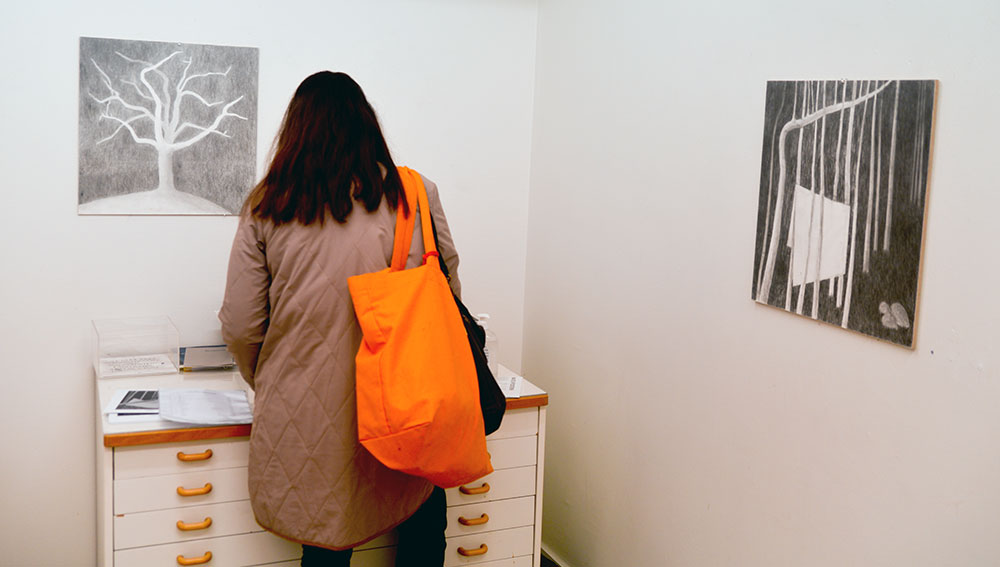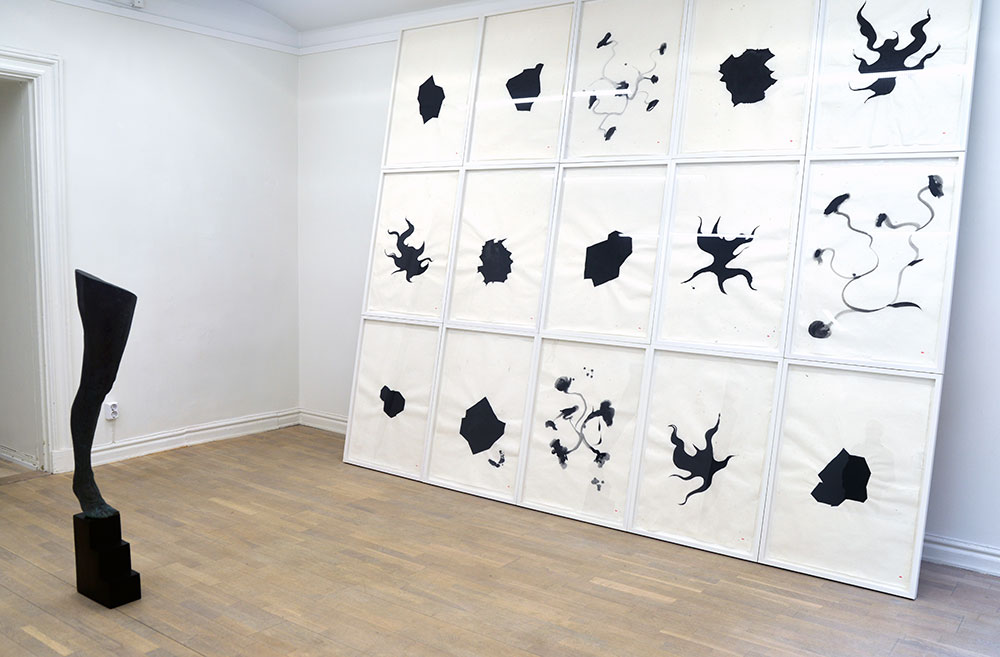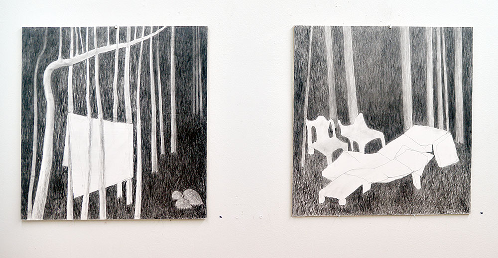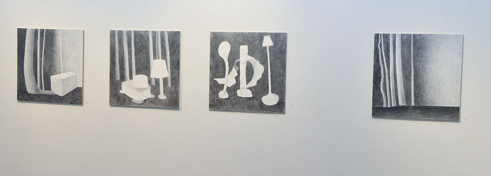 Tursamt nog så är det inte så många steg till nästa nyöppnade utställning, för nu börjar det kännas att jag har gått en bra bit – med mina mått mätt. Utställare hos Galleri Aveny är en gammal bekant, Kjellåke Gerinder, som jag tidigare mest har sett grafik och måleri av. Nu visar han enbart teckningar i kvadratiskt format. Förstår att han som grafiker lockas av grafitens förmåga att återge den totala gråskalan från vitt till svart.