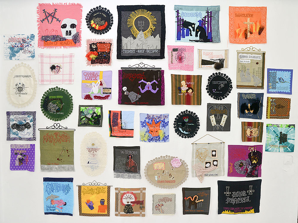 Efter det gick promenaden mot Haga för ett besök hos Galleri PS. Utställare Richard Johansson & Filippa de Vos. Richard visar målningar och skulpturer. Filippa broderi. Numera tror jag att det bara kallas för broderi eller på nutida konstsvenska brodery. För inte så länge sedan minns jag att man talade om fritt broderi ungefär som man ännu tidigare talade om frihandsteckning.