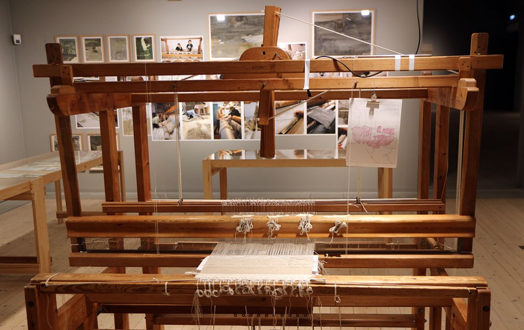 Att väva med linets tunna trådar är ett komplicerat och tidskrävande hantverk. Under en femårsperiod har Andreas Eriksson haft de fem vävproffsen Maria Andersson, Sara Eriksson, Siri Pettersson. Katja Beckman och Ben Smith anställda för att utföra vävandet av hans verk varav en del nu visas på Nordiska Akvarellmuseet.