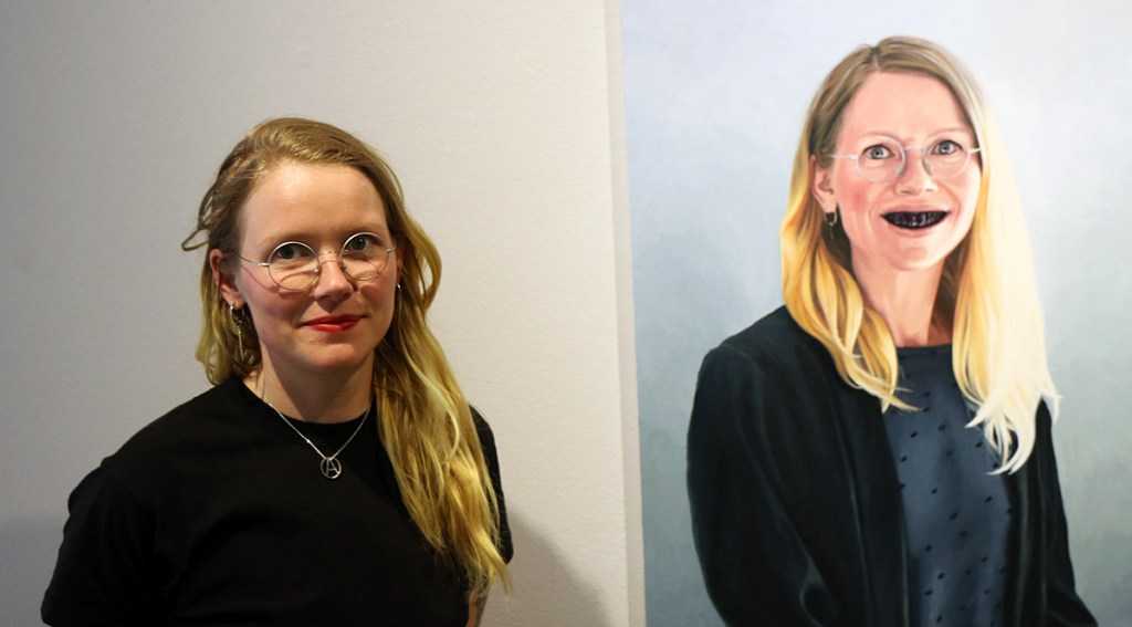Ett målat självporträtt vars leende är kolsvart kunde ju vara bilden av någon som är glad över att ha ätit lakrits. Men här är tanken att protestera mot samhällets utseendefixering får jag veta. Och den är ju värd att diskutera.