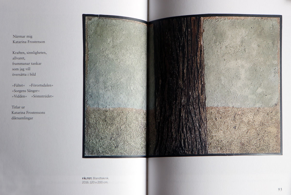 På en resa träffade han en poet och blir intresserad av hennes arbetssätt och dikter. Det fördjupar hans intresse för poesi som en inspirationskälla. Han berättar om hur ”kraften, sinnligheten, allvaret” i Katarina Frostenssons dikter. frammanat tankar som han vill gestalta i bild. Boken ger flera fina exempel