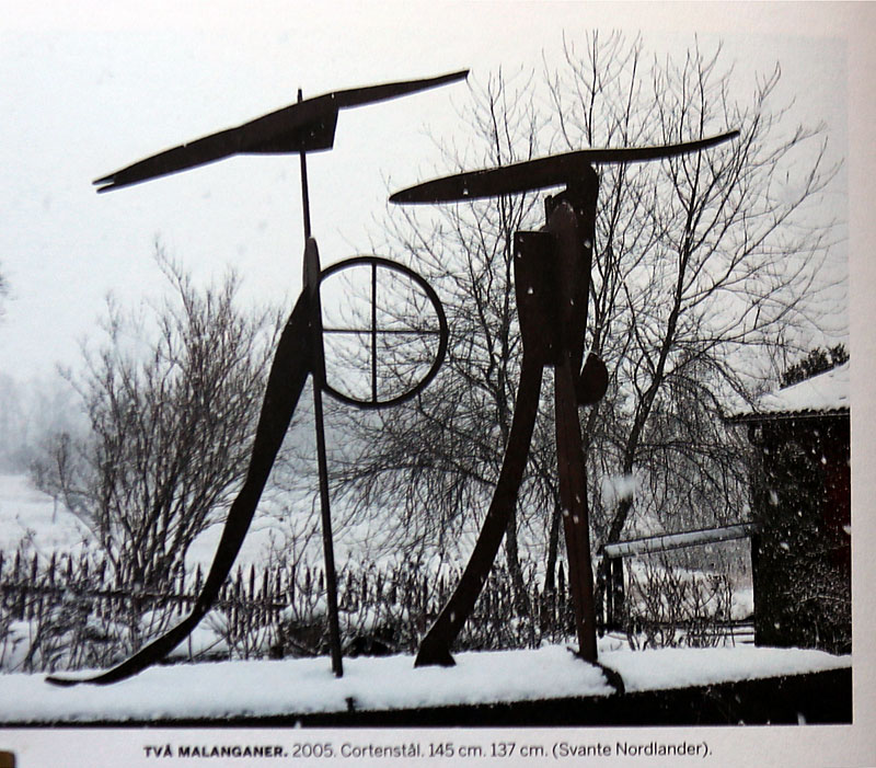 Malanganerna, ett tema med stora mytiska skulpturer han jobbade med i flera år finns förstås med. Liksom hans märkliga och mycket vackra Pietà placerad i Gryts kyrka.