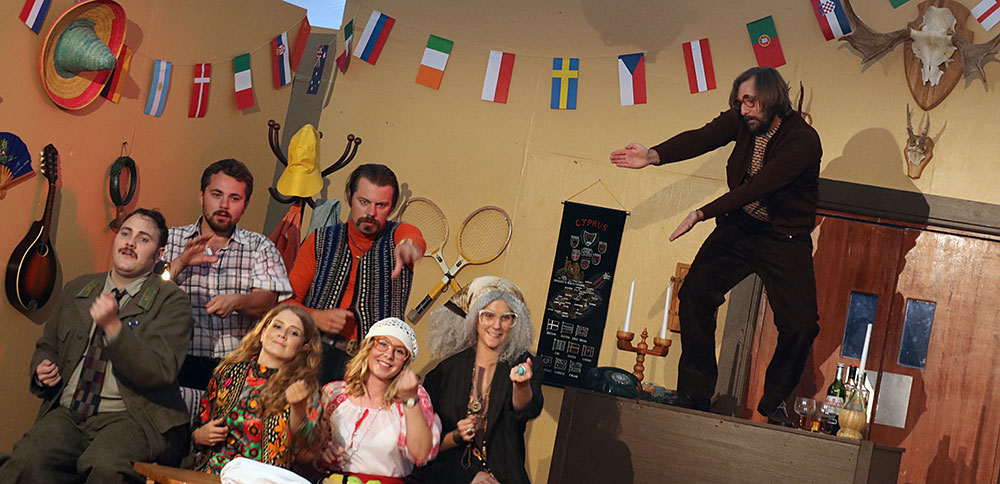 På scen: John Samuelsson, Nils Sahlström, Johanna Ström, Emauel Blom, Cecilia Linderoth, Maja Skarbäck, Anton Hellstrand