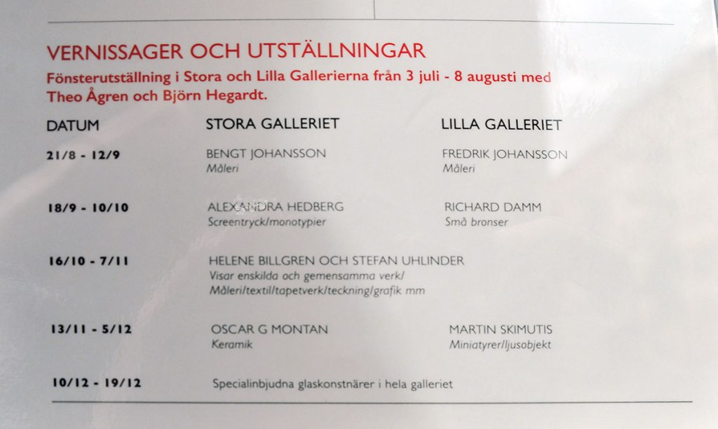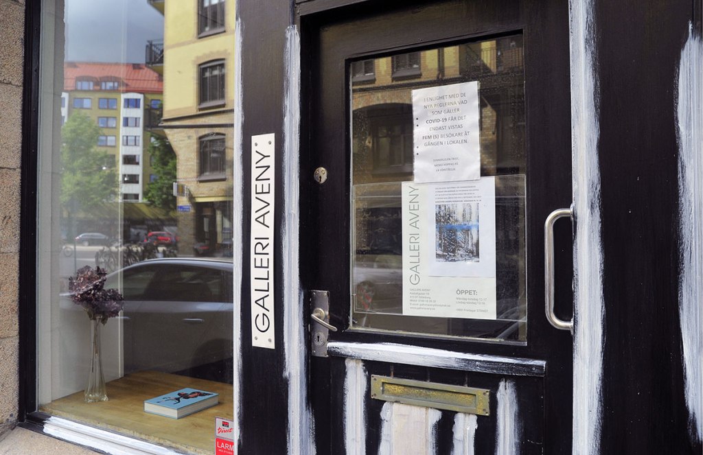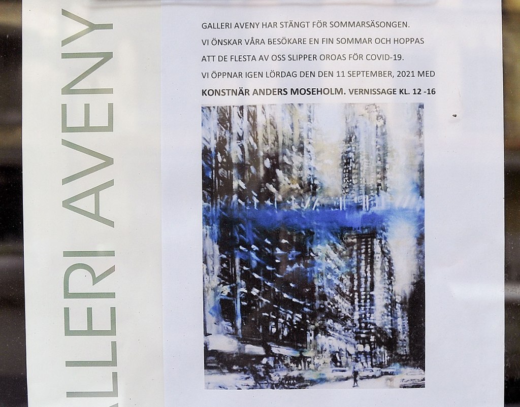 Galleri Aveny på Kastellgatan kommer nog att möta hösten med nymålad entré. Anslaget i dörren säger att hösten här börjar den 11/9 2021.
