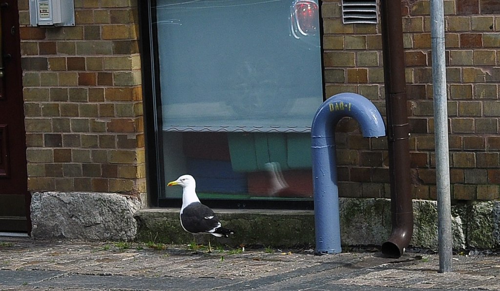 Snett över gatan vandrade det en stor mås fram och tillbaka över trottoaren. Förstod inte först varför. Men sen föll polletten ner. Hen speglade sig i fönstret. Vet inte om det var i beundran inför sig själv eller om det var en oinbjuden konkurrent eller om det var för att imponera på spegelbilden. För att ge ett rimligt svar på de frågorna krävs det större etologiska kunskaper än vad jag förfogar över.