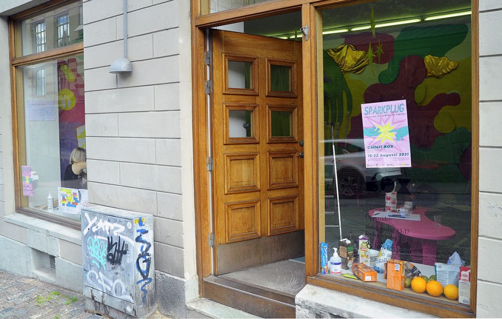 Sista anhalten på Kastellgatan var Galleri Box. Och här var dörren öppen. För de började hösten måndag den 16 augusti med en temavecka kallad Sparkplug. För mera info om den se vår affischpelare.