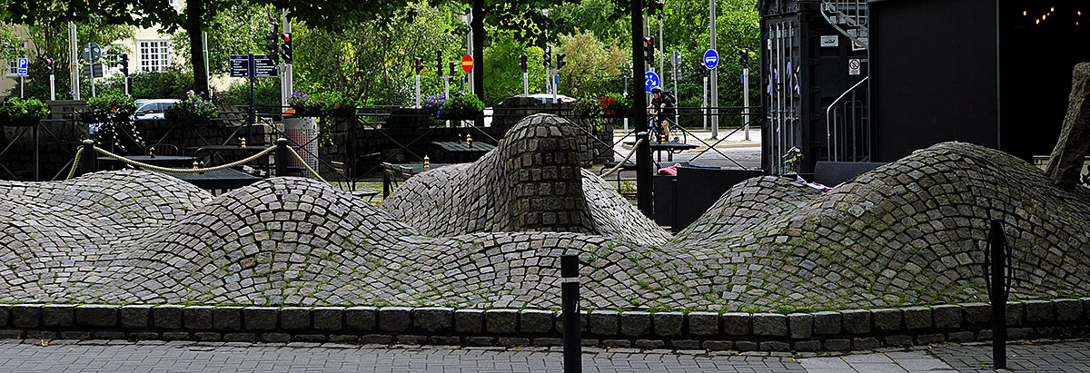 Vid Sveaplan framför Gyllene Prag möttes jag av ”hela torget stormar”. Gösta Silléns mjuka men stenhårda förvandling av torget. Vad döljer sig under vågorna? Är det ett berömt storsjöodjur som är på väg upp genom ytan?