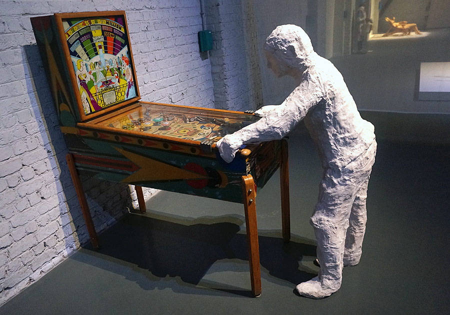 George Segal problematiserar ändå litet. Hans flipperspel verkar vara ett object trouvé. Och personen som står vid det är skulpterad i vit gips. Då blir det en spänning, men i sanningens namn inte särskilt stor.