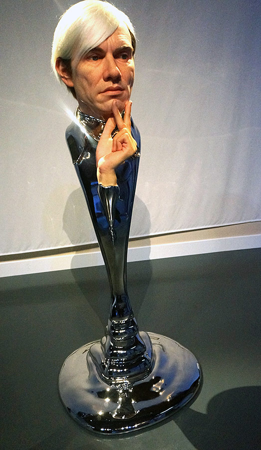 Så kommer jag till Kazu Hiros skulptur med Andy Warhol. Jag har aldrig sett Andy W live, men såvitt jag kan se är den här avbilningen klockren. Men kan en hyperrealistisk skulptur (bara) vara delvis hyperrealistisk? Andy Wahols minst sagt porträttlika huvud är monterat som om det vore en schackpjäs. Men då lämnar vi realismen och går in på budskapskonstens domäner.